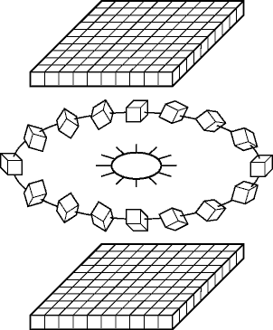 Figure 5 is a closeup of the two collector plates and the sixteen selector blocks dancing around a time wheel.